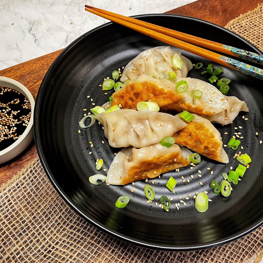 Lunar New Year is a time to celebrate with your family and friends. It is also a great time to indulge in many types of Asian appetizers. One of my favorites is gyoza! Gyoza are Japanese style dumplings that are steam fried. That means you fry the bottoms until golden brown and then steam the gyoza until the wrapper and filling are plump and tender. You then take these perfect pockets of goodness and dip them in a lovely, tangy dipping sauce. It is the perfect blend of savory Japanese flavors that dances in your mouth!