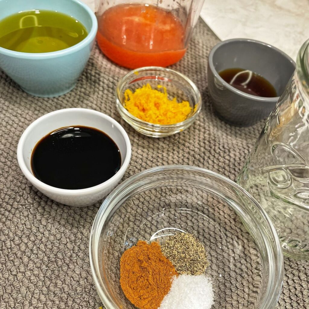Flavorful dressing with fresh squeezed blood oranges, aged balsamic, and a touch of maple syrup!