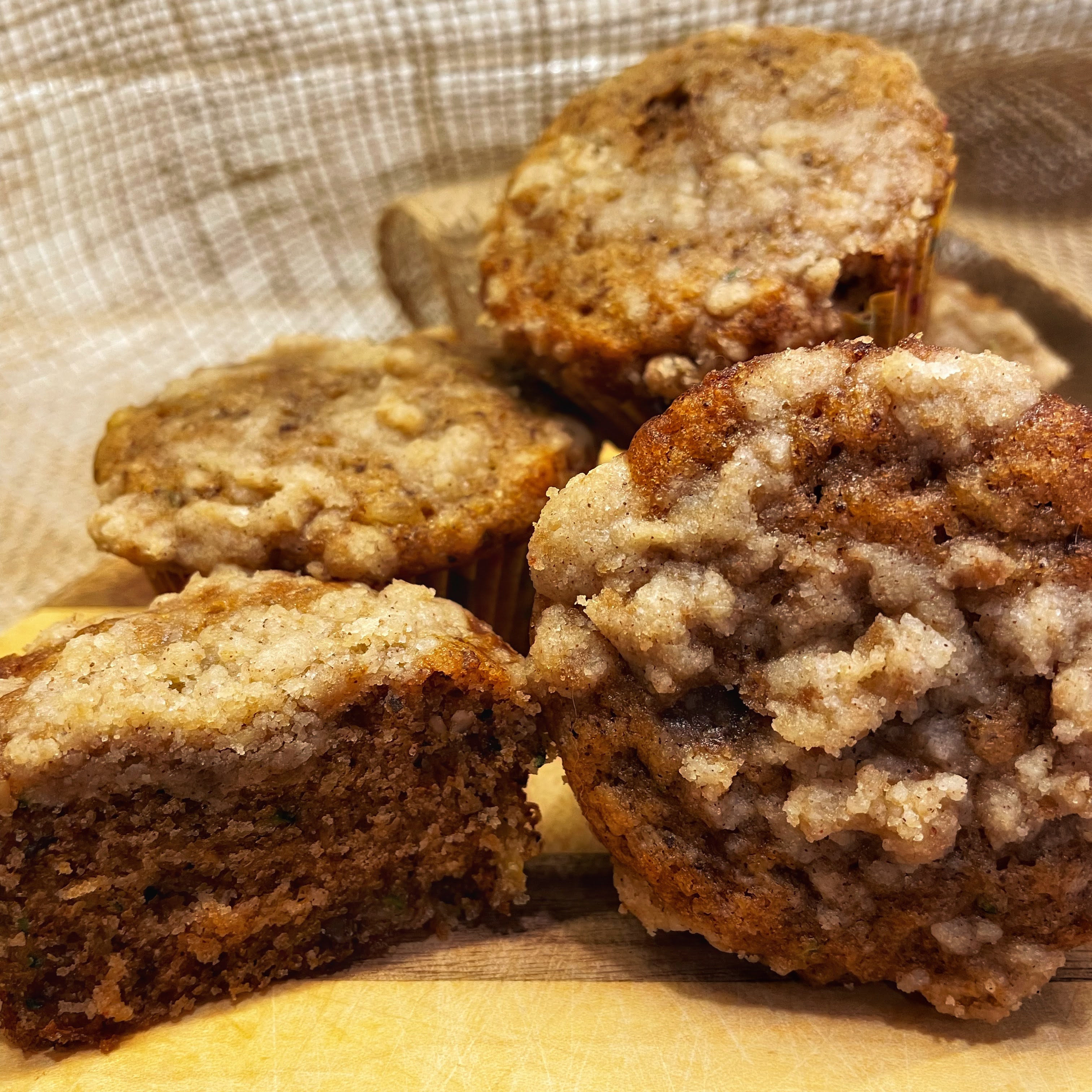 *This recipe can be made as two loaves. Grease two loaf pans. Divide batter evenly between both pans. Evenly spread streusel topping on both loaves. Bake 50-60 minutes until toothpick comes out clean. Cool 5 minutes in pan. Move to wire rack to cool completely before slicing.