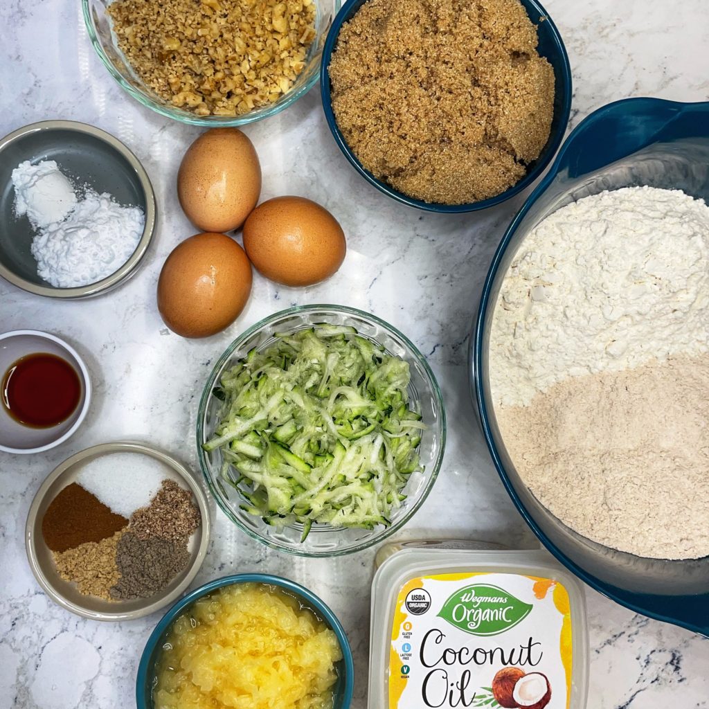 A traditional zucchini quick bread uses all-purpose flour, vegetable oil, and white sugar. For this version, I added whole wheat flour, swapped out vegetable oil for healthier coconut oil, and substituted Truvia for white sugar. The pineapple has bromelain, a known enzyme with anti-inflammatory properties. Walnuts are an excellent source of several vitamins and minerals and can help reduce cholesterol levels. It’s a win-win!