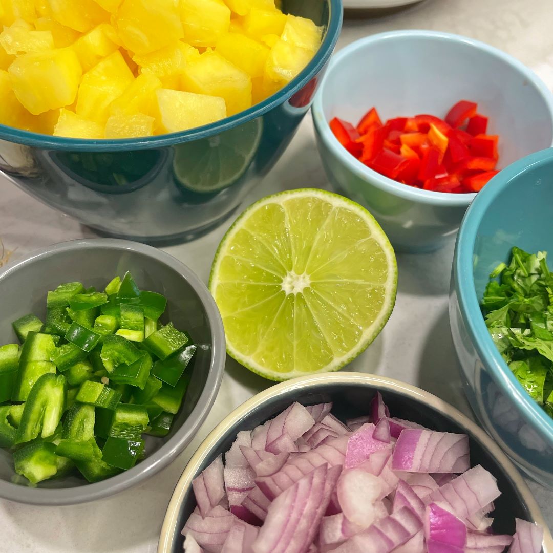 - Prepare the Pineapple Salsa: