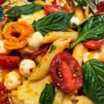 - Sprinkle with minced garlic. Spread the fresh herbs across the tomatoes.